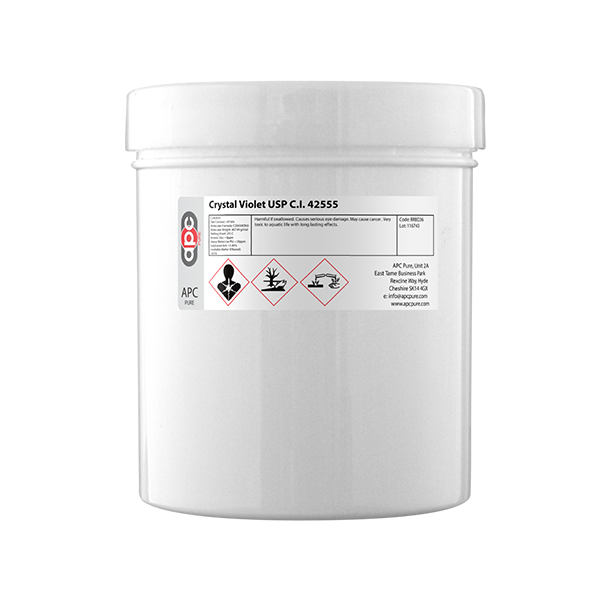 Crystal Violet is also known as Gentian Violet, a dark green powder/crystals. It is commonly used as a histological stain in the gram method for demonstrating bacteria.