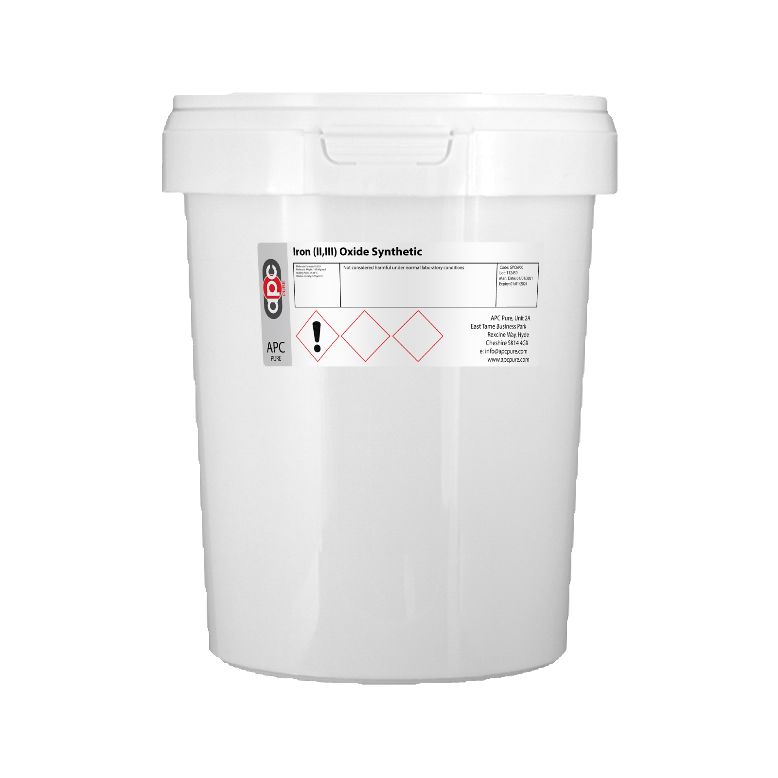 Iron (II,III) oxide synthetic is a blackish, powdery substance that consists of a mixture of iron(II) oxide (FeO) and iron(III) oxide (Fe2O3). It is commonly referred to as magnetite or black iron oxide due to its magnetic properties and deep black colour. The synthetic version is produced through a chemical process that results in a high level of purity (above 95%).