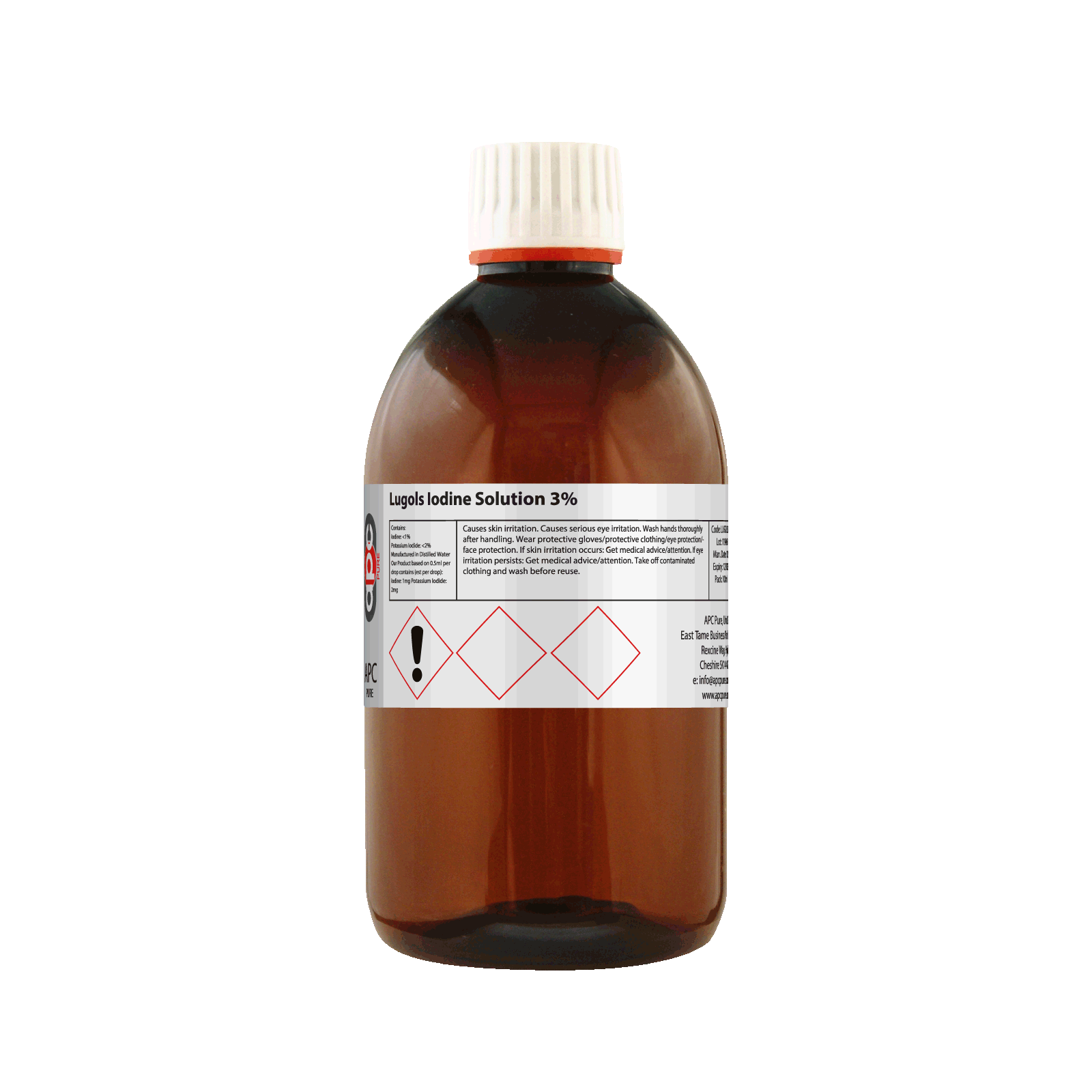 Lugol’s iodine, also known as Lugol’s solution, first made in 1829, is a solution of elemental iodine and potassium iodide in water, named after the French physician J.G.A. Lugol. Lugol’s iodine solution is often used as an antiseptic and disinfectant, for emergency disinfection of drinking water, and as a reagent for starch detection in routine laboratory and medical tests. These uses are possible since the solution is a source of effectively free elemental iodine, which is readily generated from the equilibration between elemental iodine molecules and triodide ion in the solution.